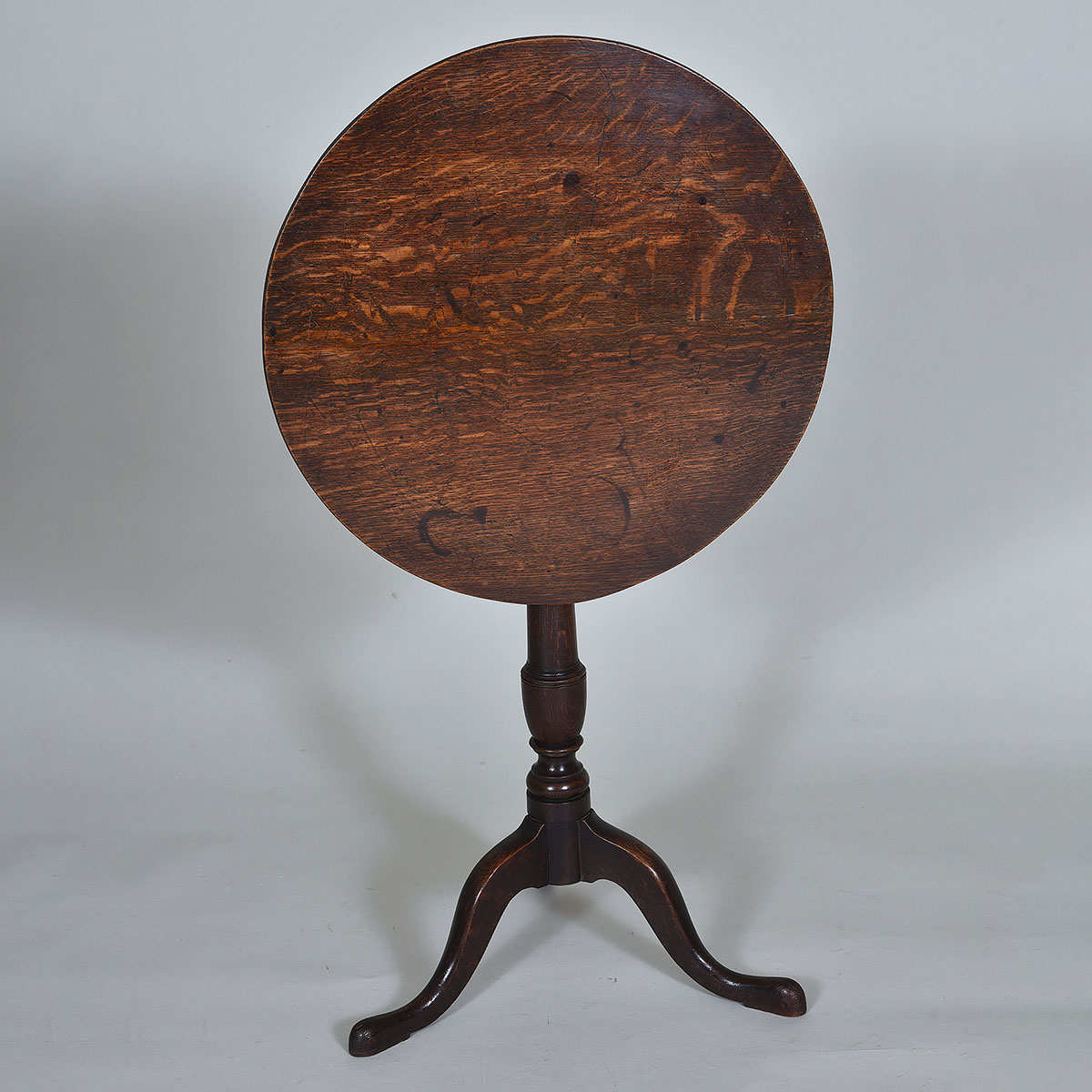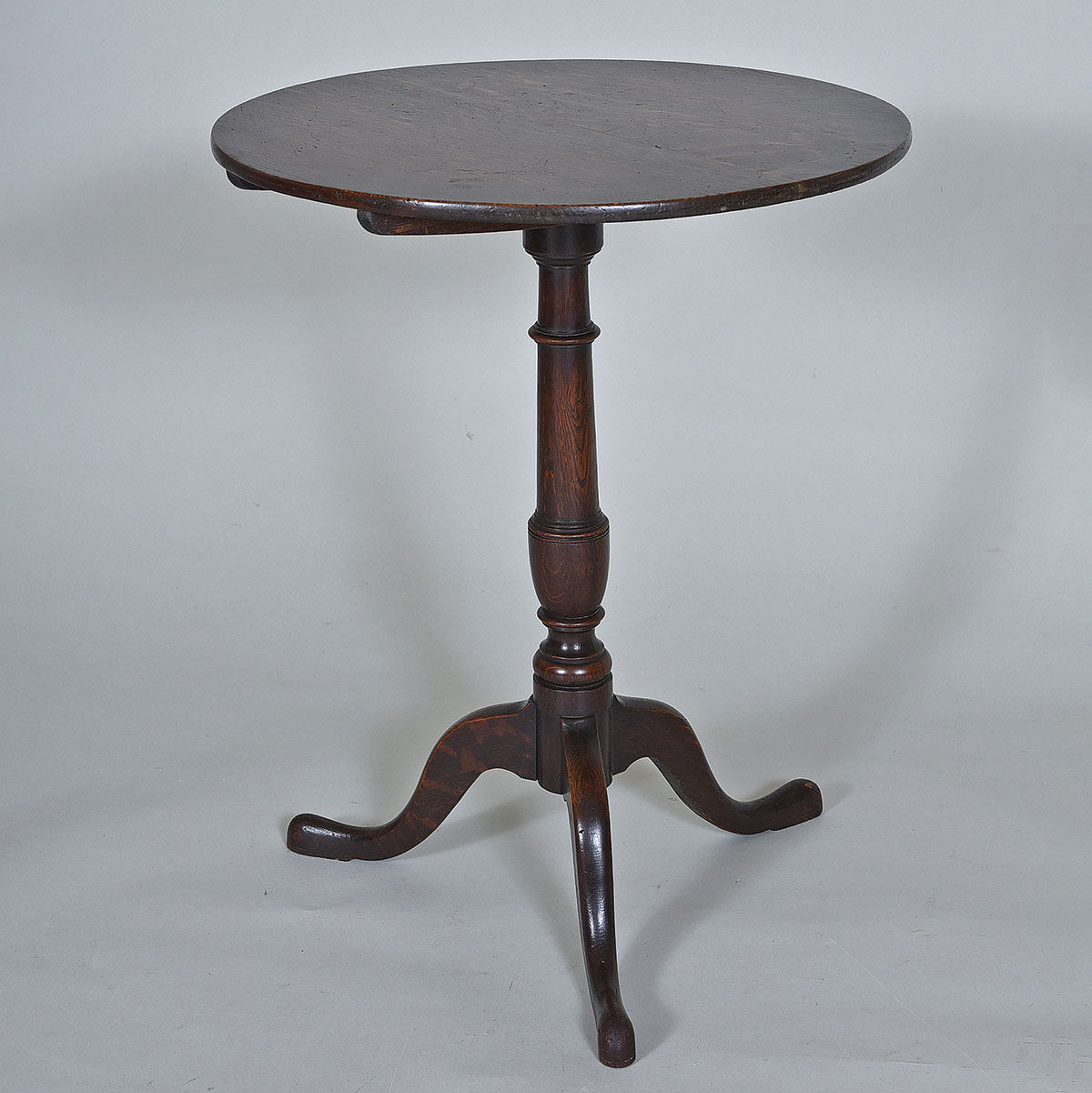 18th century Oak tripod table with tilt top. Turned stem and cabriole legs Width: 22″ / 56 cms Height: 27.5″ / 70 cms