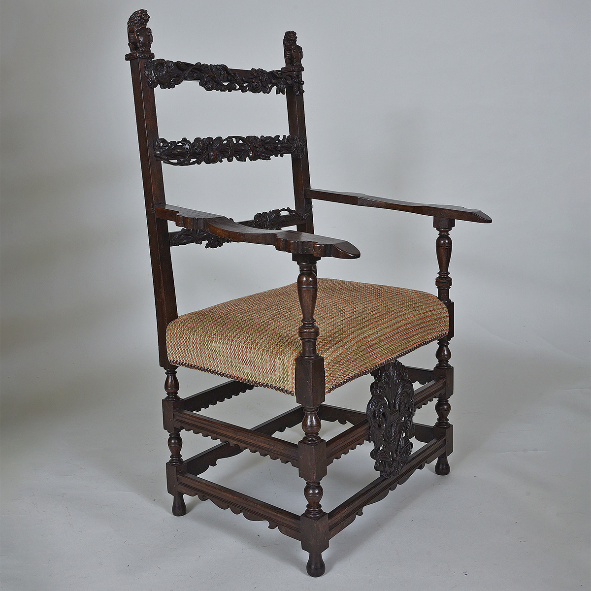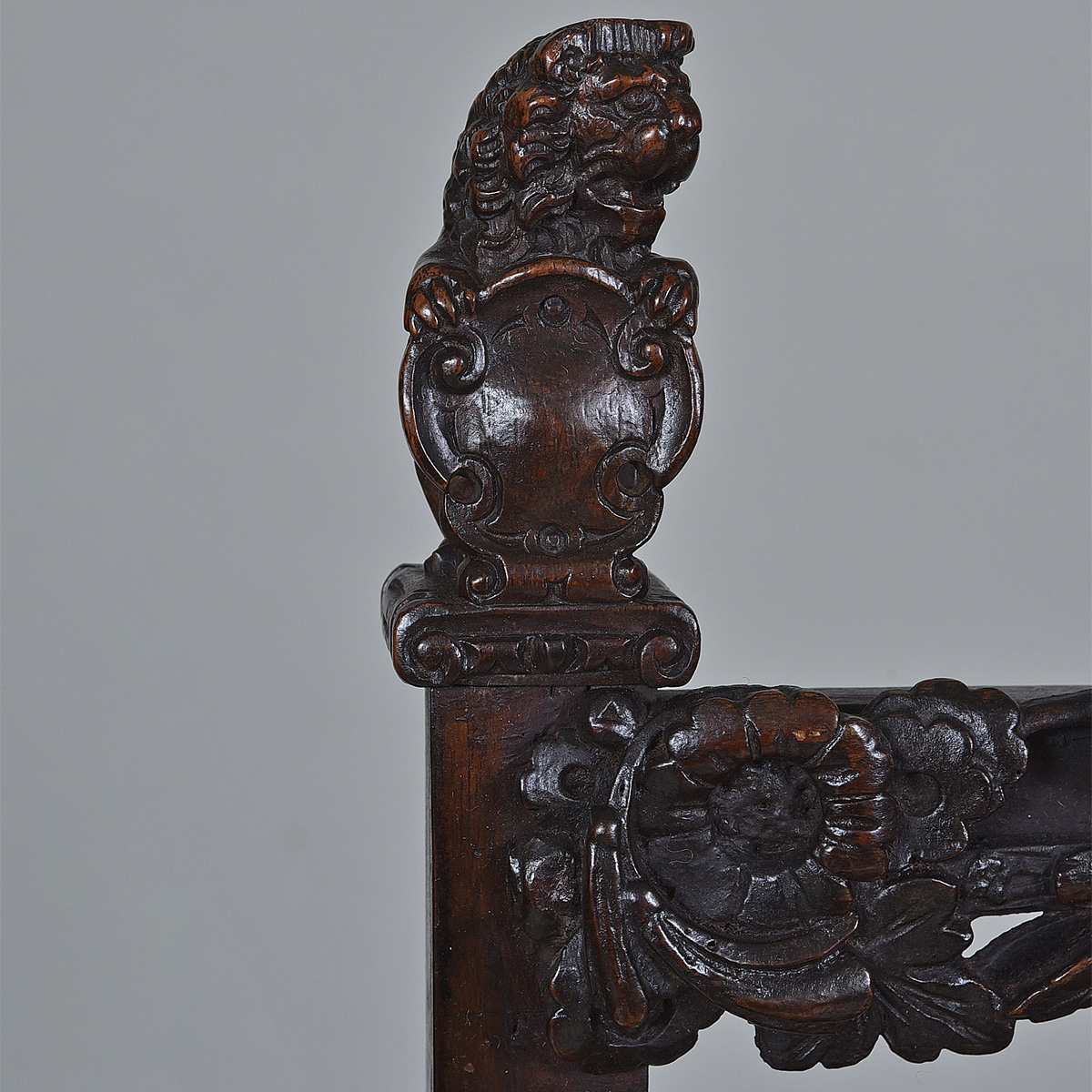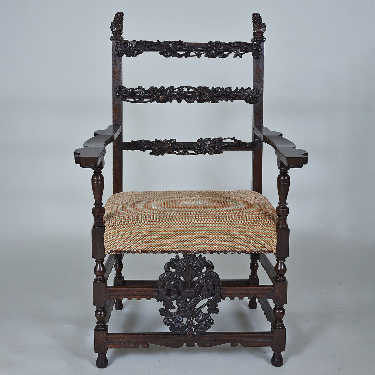18th century upholstered Italian Walnut chair – new upholstery. Width: 28.5″ / 72 cms Depth: 22″ / 56 cms Height: 46.5″ / 118 cms