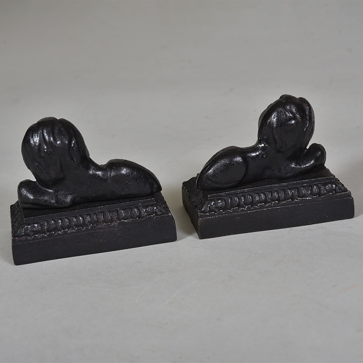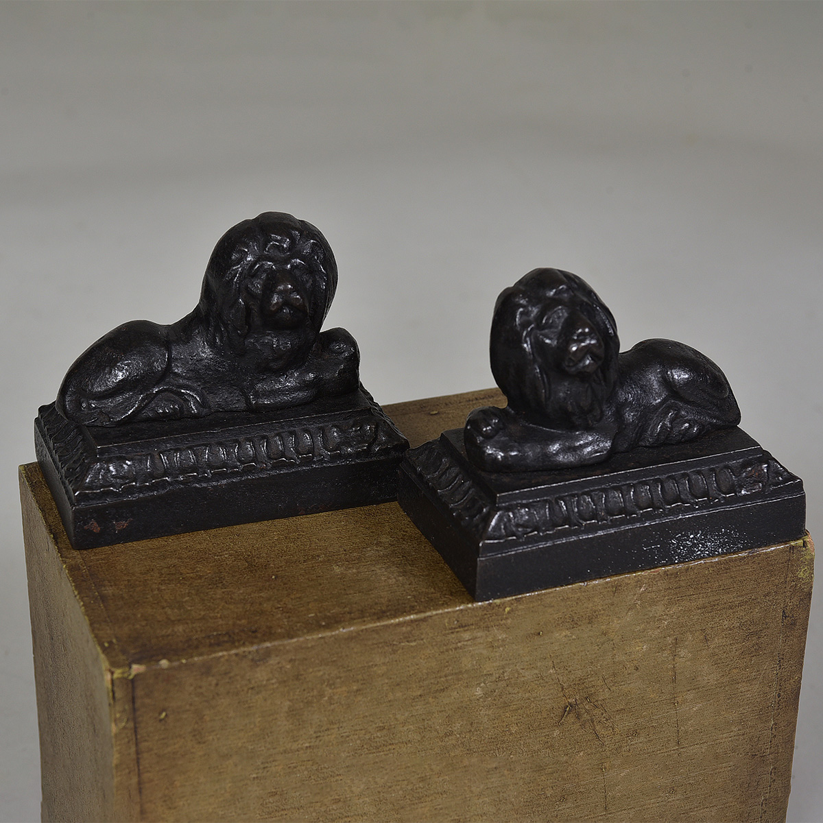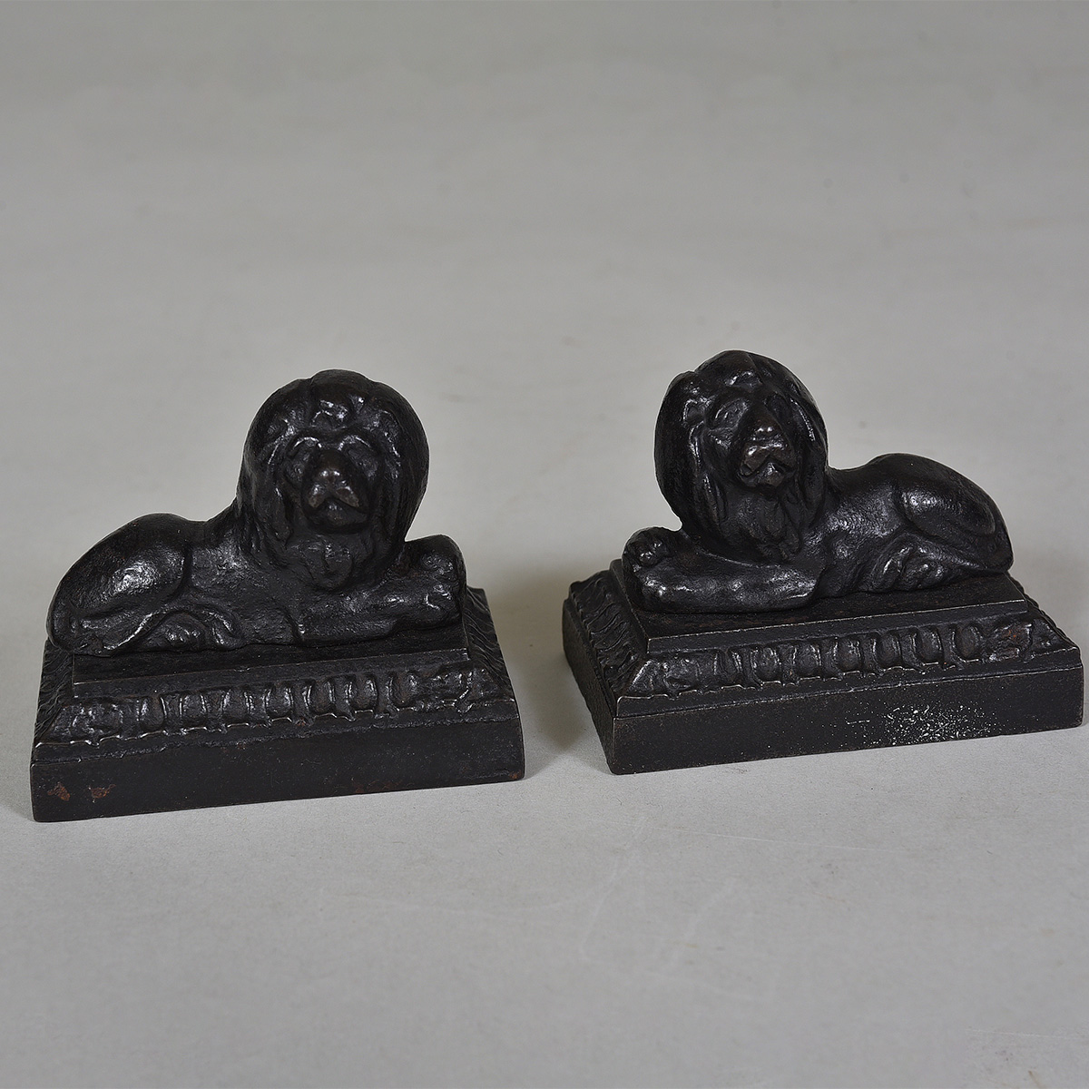 Pair of miniature 19th century iron lions Width: 4″ / 10 cms Height: 3.5″ / 9 cms